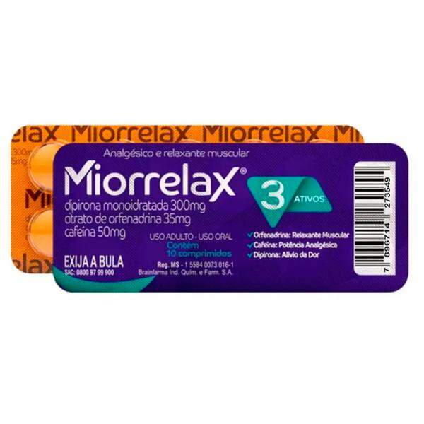 Descrição"Miorrelax® é indicado no alívio da dor associada a contraturas musculares, incluindo dor de cabeça tensional. Miorrelax® possui ação analgésica e relaxante muscular. O início da ação ocorre a partir de 30 minutos.Você deve tomar os comprimidos com líquido (aproximadamente ½ a 1 copo), por via oral. Posologia: 1 a 2 comprimidos, 3 a 4 vezes ao dia. Não ultrapassar estes limites. Não há estudos dos efeitos de Miorrelax® administrado por vias não recomendadas. Portanto, por segurança e para eficácia deste medicamento, a administração deve ser somente pela via oral. Siga corretamente o modo de usar. Em caso de dúvidas sobre este medicamento, procure orientação do farmacêutico. Não desaparecendo os sintomas, procure orientação de seu médico ou cirurgião-dentista. Este medicamento não deve ser partido, aberto ou mastigado."